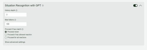 Once you have enabled the 'Situation Recognition with GPT' block, you need to set up conditional reactions for which the OLX chatbot should recognize situations.